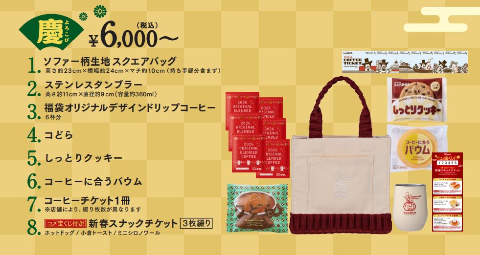 2026年のコメダ珈琲の福袋はドムドムハンバーガーとコラボしたセットが登場します!