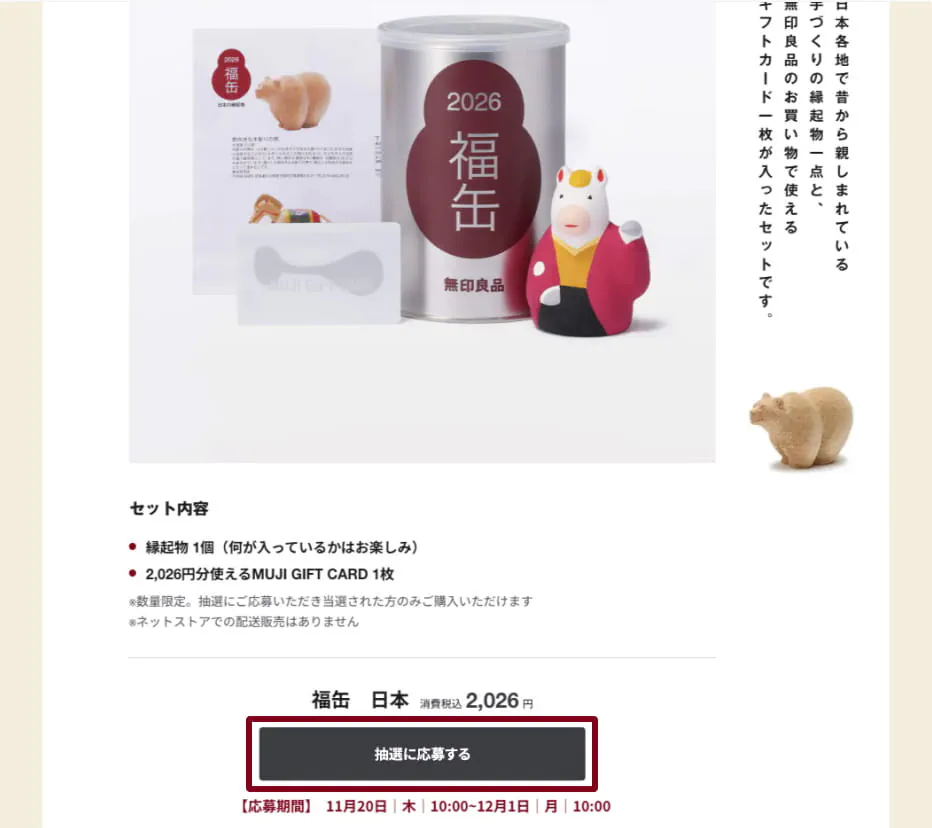 2026年も縁起物とMUJI GIFT CARDが入っている福缶です。